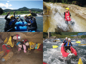 【お得情報A】 ラフティング(岐阜県・長良川)に、ケイビング、キャニオニング、ダッキーを組み合わせたコンボコースがお得です。※半日、1日コースあり。
